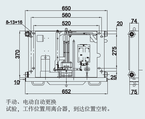 底盘车增加了电动操作功能,是实现开关柜智能化、程序化、远程控制等的必备硬件基础设施。电动机构按机动底盘车安装分为垂直结构和水平结构,两者都是手动安装在原有底盘车上,不改变原有手动底盘车的形状尺寸,具有联锁功能,手动/电动均便于更换。GPV-□/DD2电动机构由于电机是垂直的,应插入断路器机构箱内,通用性不强,但电机选择范围广,价格低廉,而且电机更换也方便。电机为GPV-□/DD3电动机构专用微电机,利用多余空间安装底盘车,不改变原有底盘车尺寸,具有较强的通用性。