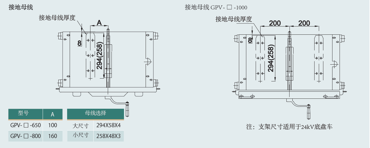 3. 24KV底盘车仅将行程从200mm修改为300mm,其余保留,在原型号上增加/X300