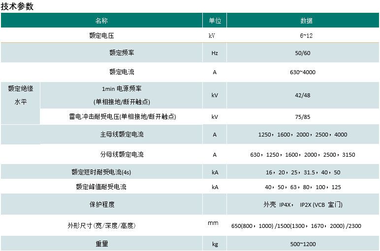 金属铠装、空气绝缘,适用于中压配电,可耐受内部电弧;厂内装配、试验、户内安装, 按照国际标准和中国国家标准试验;多种功能单元可组合实现各种安装方案, 各隔室均用金属隔板相互隔离, 模块式结构、易于装配。
