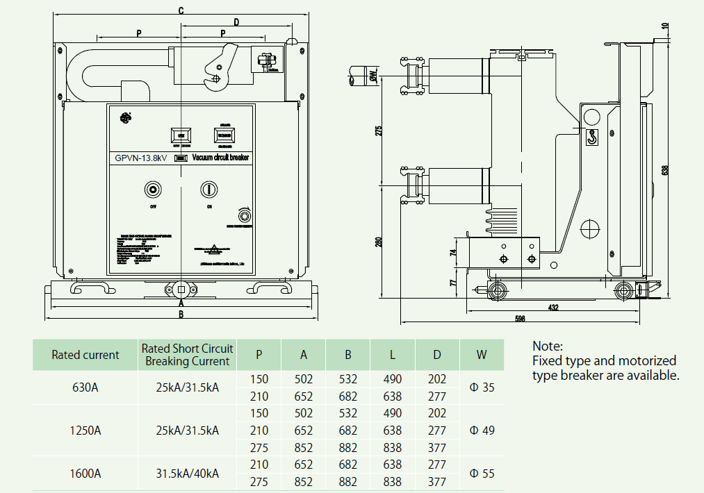 使用于中置柜的真空断路器 12kv 630A~4000A