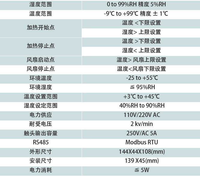 该设备采用优质的数字传感器和先进的程序控制技术,有两个通道对环境温度和湿度进行监测和控制。人性化设计,可根据工作环境状态自动调节热量、除湿或报警。