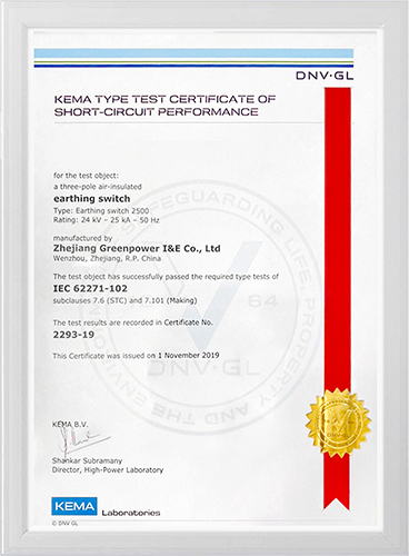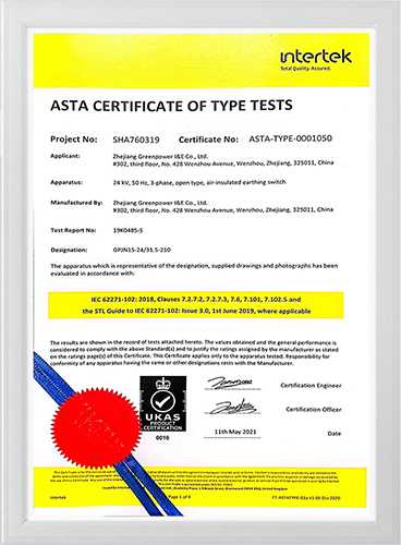 ASTA证书-24kV接地开关