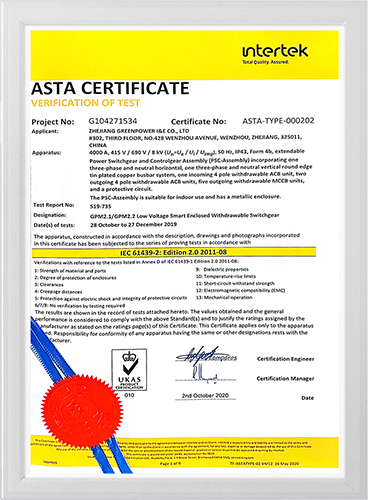 ASTA证书-低压开关柜